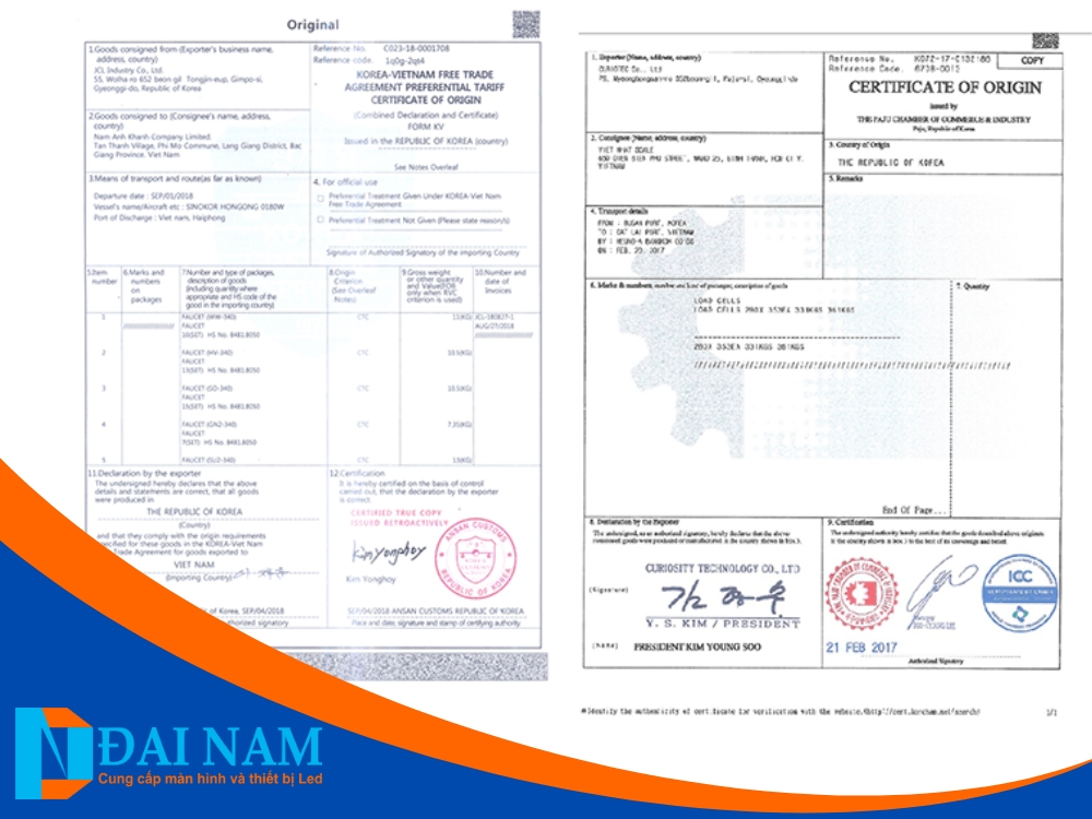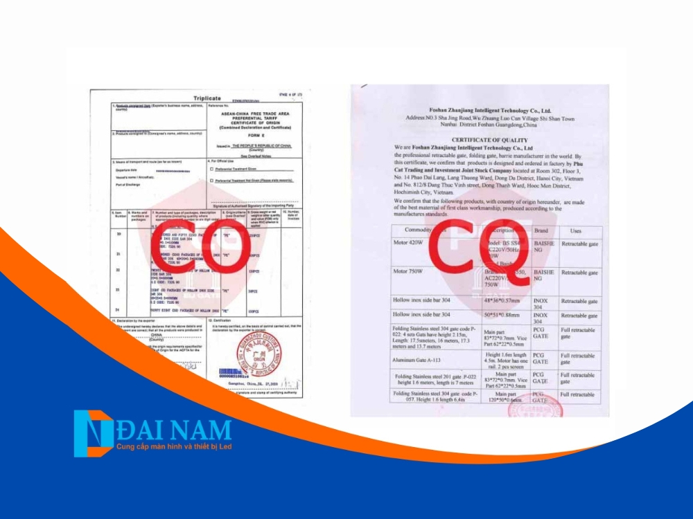 Hàng hóa thường được nhập khẩu chủ yếu từ nhà sản xuất uy tín tại Trung Quốc, Led Đại Nam luôn yêu cầu đối tác đảm bảo rõ ràng về nguồn gốc xuất xứ CO (Chứng chỉ xuất xứ) và Chứng chỉ chất lượng CQ.