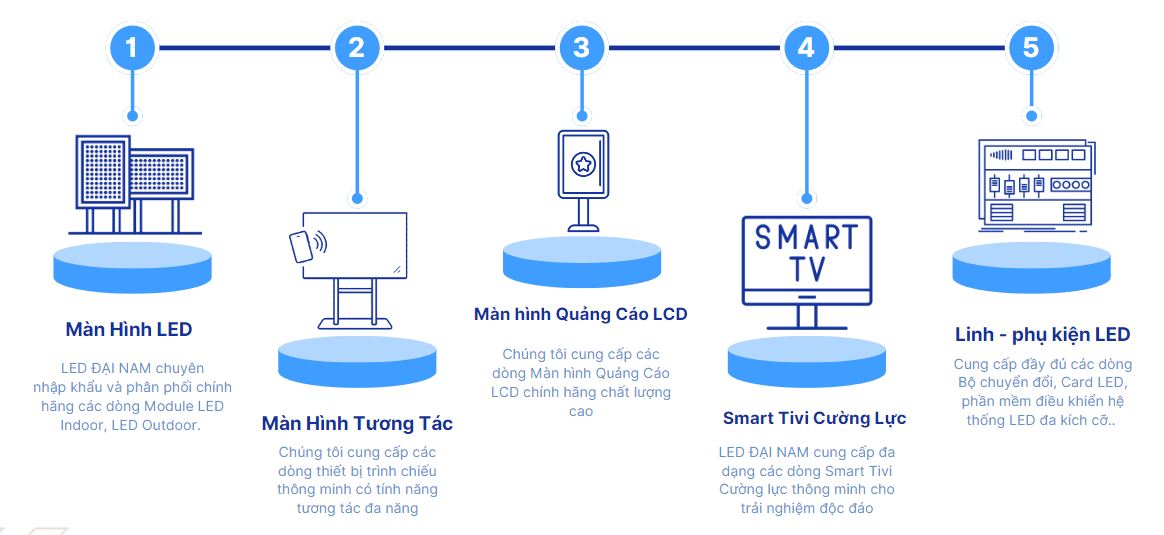 Thương hiệu LED ĐẠI NAM – Chuyên phân phối, thi công, lắp màn hình LED, màn hình tương tác, màn hình quảng cáo LCD Uy tín trên Toàn Quốc. Cam kết hàng chính hãng đầy đủ CO, CQ. Thời gian thi công nhanh chỉ 2 – 5 ngày.