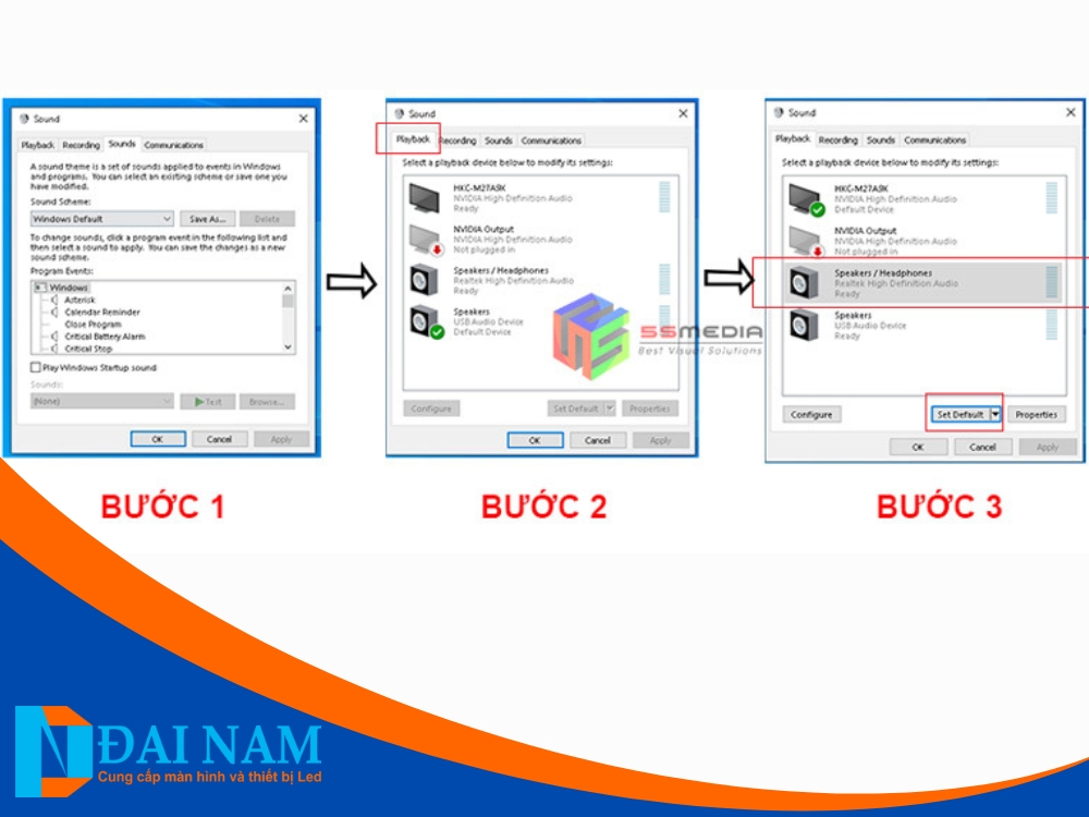 Bước 3: Click chuột trái chọn “Speakers/ Headphones” và tiếp tục nhấn chọn “Set Default”