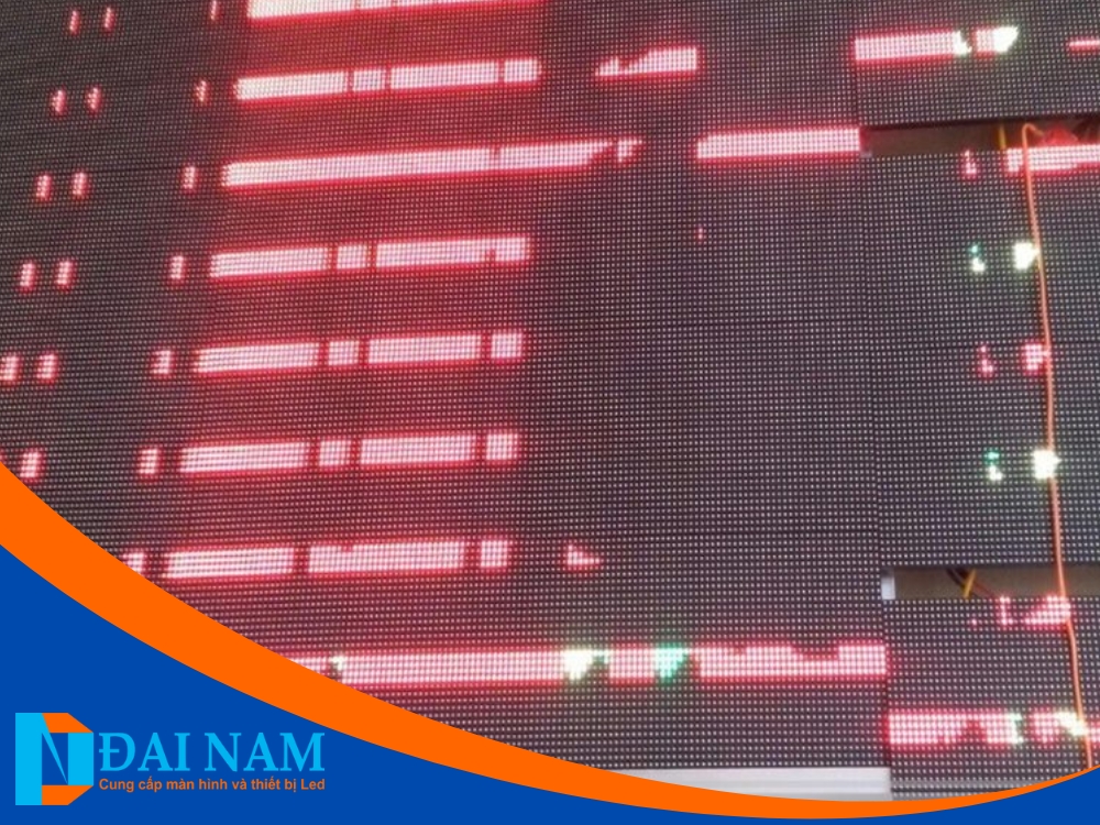 Khắc phục: Kiểm tra và kết nối lại cáp tín hiệu, thử thay card màn hình hoặc main màn hình khác. Nếu lỗi do module LED, cần liên hệ nhà cung cấp để được hỗ trợ sửa chữa hoặc thay thế.