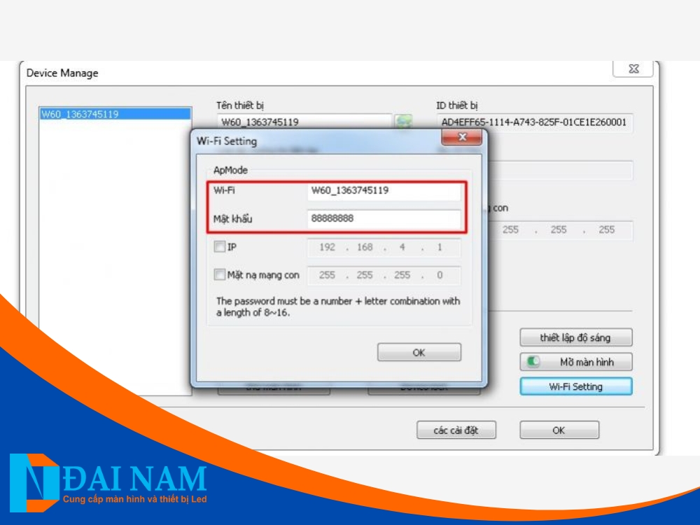 Quý vị có thể thay đổi trực tiếp trên điện thoại hoặc laptop. Trong bài viết này, Led Đại Nam sẽ hướng dẫn thao tác trên laptop bằng cách tải phần mềm HD 2018 về máy cài đặt. Sau đó, kết nối wifi với mạch điều khiển để đổi mật khẩu và tên wifi của mạch HD.
